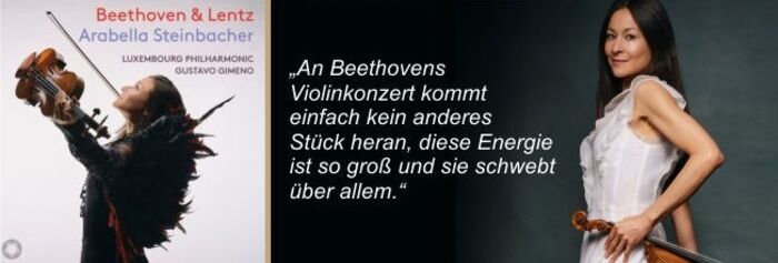 die deutsche Violinvirtuosin Arabella Steinbacher veröffentlicht am 25. April 2025 ihr brandneues Album „Beethoven & Lentz“ beim Label Pentatone, das sie mit Luxembourg Philharmonic unter der Leitung von Gustavo Gimeno eingespielt hat.